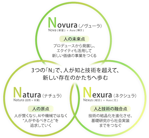 人の未来点 Nova(新星)とAura(輝き)の融合。エクイティも活用しながら、全く新しい価値を持つ事業と未来を創造します。